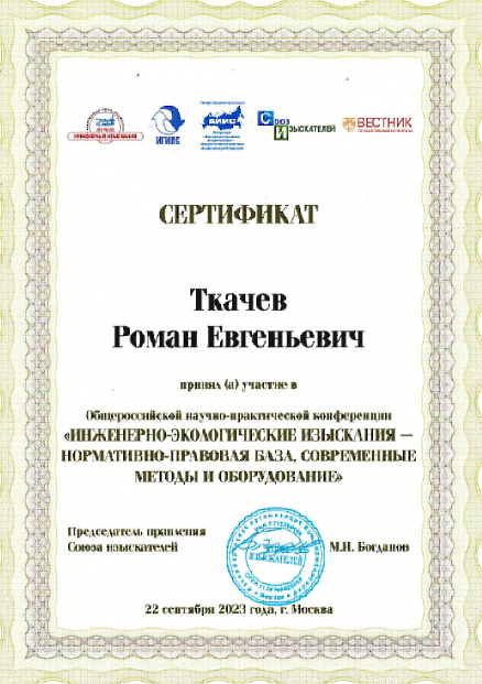 22 сентября 2023 года редакция журнала «Инженерные изыскания» совместно с ООО «Институт геотехники и инженерных изысканий в строительстве» («ИГИИС»), Ассоциацией «Инженерные изыскания в строительстве» - Общероссийское отраслевое объединение работодателей («АИИС»), Союзом изыскателей провела Общероссийскую научно-практическую конференцию «Инженерно-экологические изыскания – нормативно-правовая база, современные методы и оборудование».